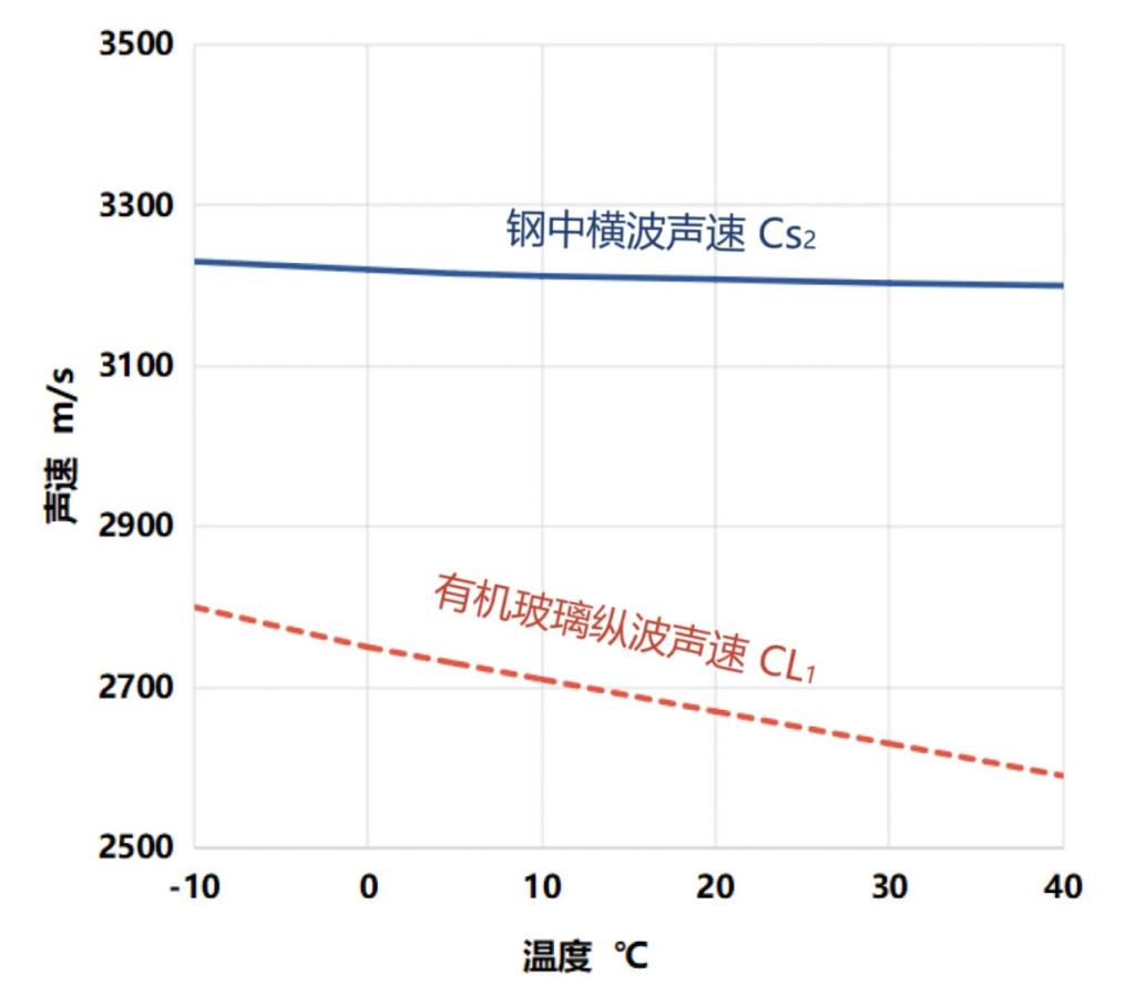 溫度除了對鋼材的超聲波衰減程度有影響外,溫度的變化還會使材料聲速發生改變,而材料聲速作為超聲波檢測的重要聲學指標,他的變化會引起多個檢測工藝參數的變化,最終導致我們對缺陷定位、定量的不準確。