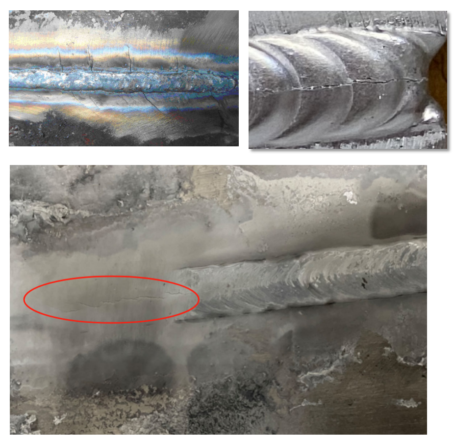 說明:在焊接應(yīng)力及其它致脆因素共同作用下,焊接接頭中局部地區(qū)的金屬原子結(jié)合力遭到破壞而形成的新界面而產(chǎn)生的縫隙。(GB/T6417 NO.100)