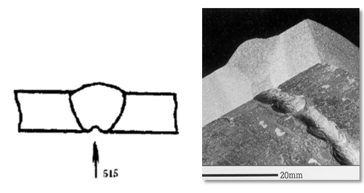 說明:由于對(duì)接焊縫根部收縮造成的淺的溝槽。(GB/T6417 NO.515)