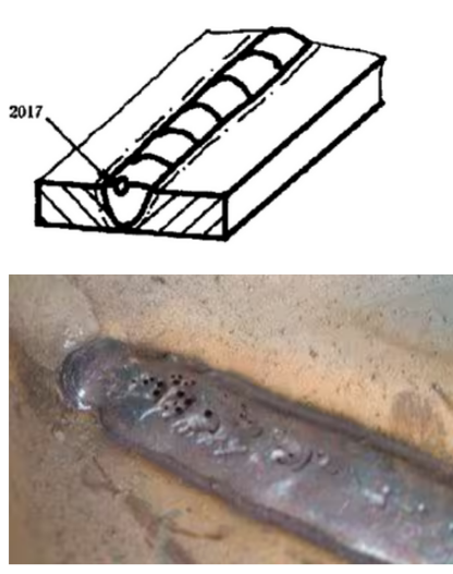 說明:暴露在焊縫表面的氣孔。(GB/T6417 NO.2017)