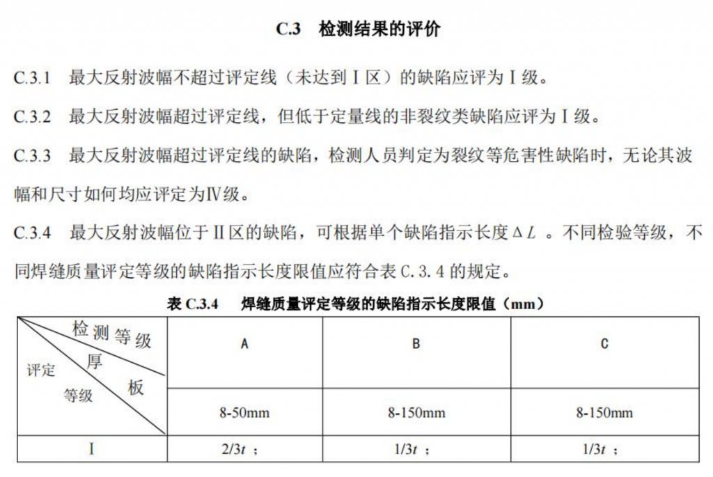 例如:在鋼結(jié)構(gòu)焊縫超聲檢測的檢測、驗(yàn)收與評定過程中,很多檢測人員存在誤區(qū),現(xiàn)場檢測結(jié)果給出焊縫滿足驗(yàn)收等級 2 級或驗(yàn)收等級 3 級的要求。這主要是因?yàn)殇摻Y(jié)構(gòu)焊縫超聲檢測技術(shù)依據(jù)的標(biāo)準(zhǔn)是《焊縫無損檢測 超聲檢測 技術(shù)、檢測等級和評定》GB/T 11345-2013,該標(biāo)準(zhǔn)推薦驗(yàn)收等級按照《焊縫無損檢測 超聲檢測 驗(yàn)收等級》GB/T 29712-2013 的有關(guān)規(guī)定執(zhí)行。